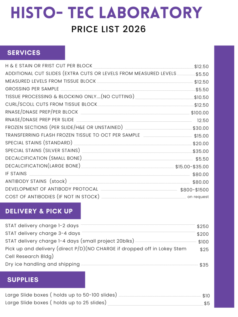 If the samples are dropped off at the Alway Building, 3rd Floor, Room M310 in the Histo-Tec closet, the pick up and delivery fee is waived.